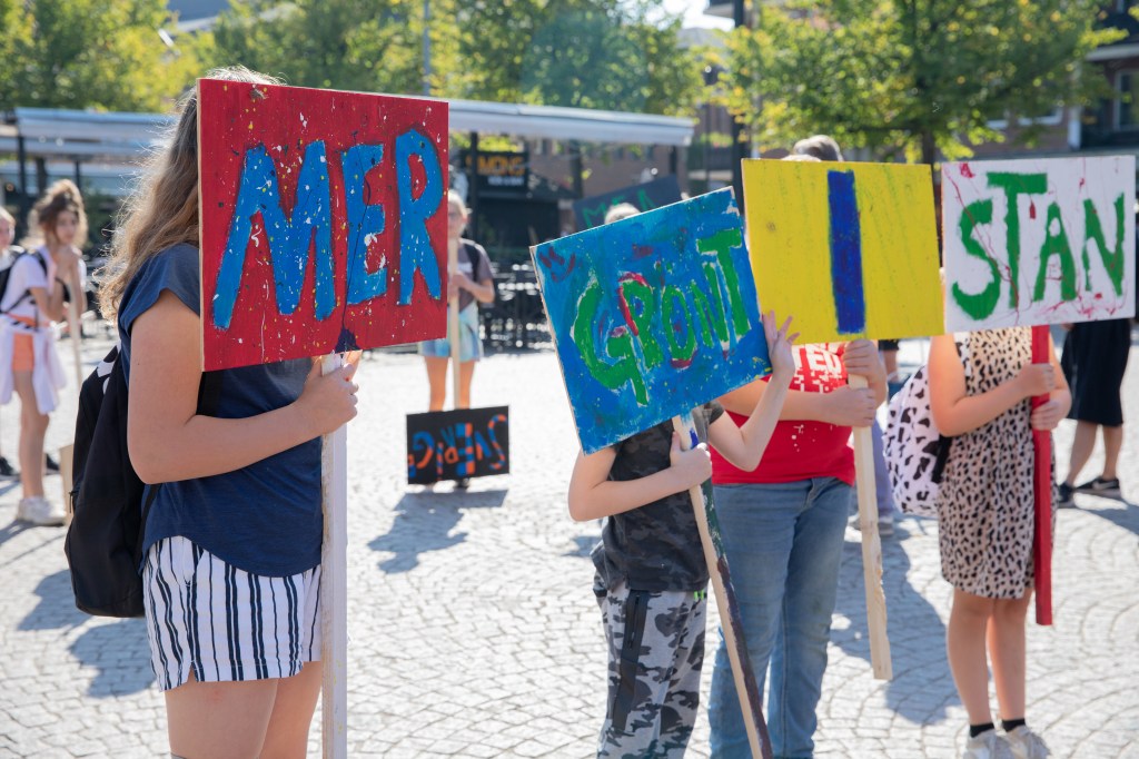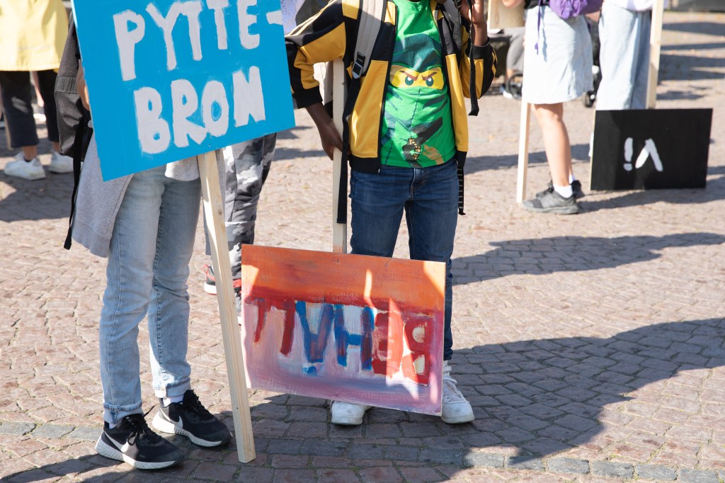 As part of a research project, 120 schoolkids from 5th grade participated in a demonstration through the city streets of Ängelholm. All their demands were painted as individual words, one word on each sign, so that the demands could only be formed collectively. Later, the kids met up with the city chairman to present their demands to him. During the meeting, the kids had individual soapboxes to stand on, so that they all reached the same height as the city chairman (180 cm). On the day of the demonstration, I published an article in the newspaper Helsingborgs Dagblad, presenting my thoughts regarding participatory projects and including children in democratic processes.