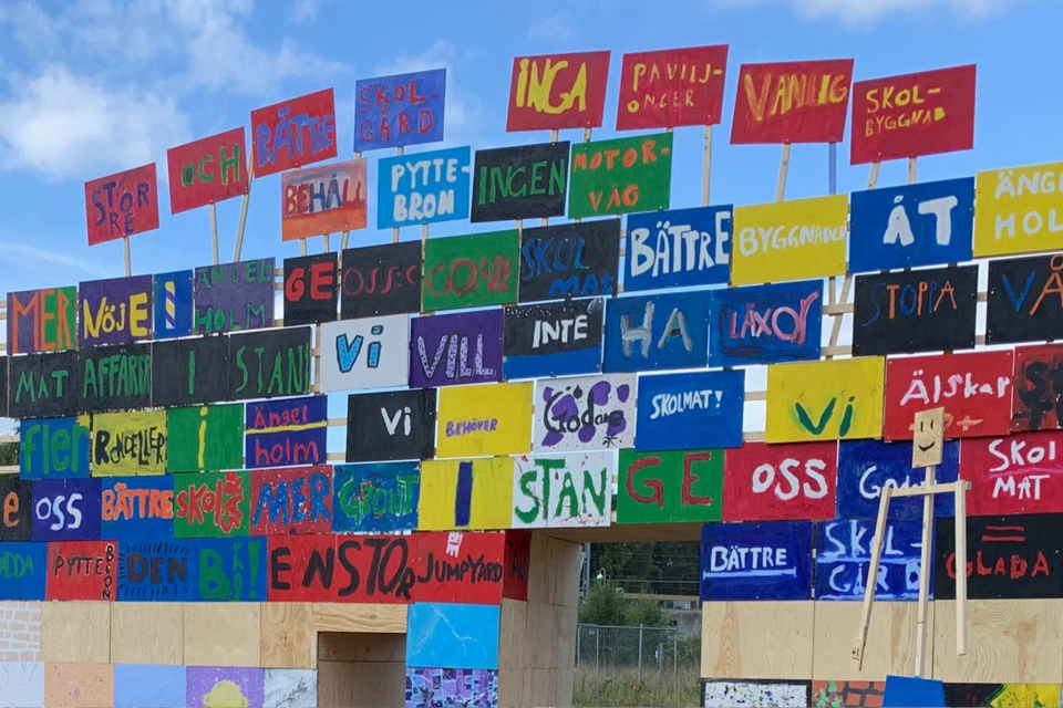 The research project Lek för demokrati, which I have been a part of, recently inaugurated The Childrens’ City Hall in Ängelholm, on September 24. I worked with 120 local children on a public protest, a meeting between the children and the city chairman, some workshops, and partly on the construction of the Childrens’ City Hall.
